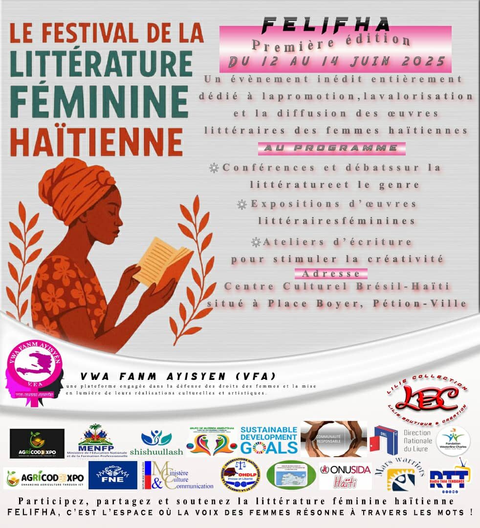 La ville de Port-au-Prince se prépare à accueillir la première édition du Festival de la Littérature Féminine Haïtienne (FELIPHA) qui, se tiendra les 12, 13 et 14 juin 2025, au Centre Culturel Brésil-Haïti à Pétion-Ville, une initiative portée par Vwa Fanm Ayisyen (VFA), en vue de donner la parole aux femmes et aux oubliées qui luttent dans la société haïtienne.