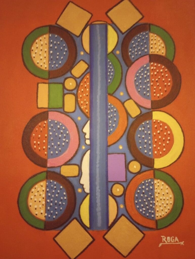 Au départ, porter attention à chaque geste créatif du pinceau de RoGa peut sembler insignifiant puisque c’est le détour inévitable de l’œil à travers la géométrie des couleurs nuancées qui importe. En effet, pour arriver à comprendre certaines œuvres de l’artiste, il faut d’abord semer des graines de bon sens dans l’univers fractionnaire des couleurs injonctives.